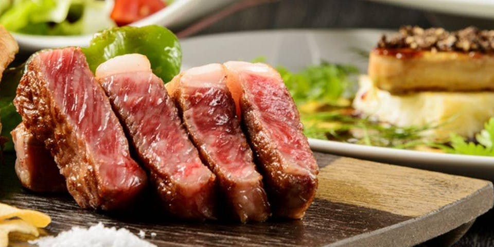 ディナー【朱雀コース】フォアグラ、蝦夷アワビ、特選黒毛和牛ステーキ 全8品