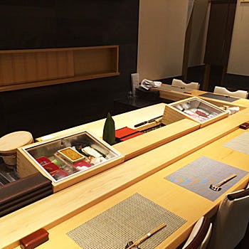 各界の著名人が遠方からこの味を求めて訪れる、下関・唐戸の名店が京橋に進出。下関直送の地魚を使用し、店主であり職人の大堀寿仁氏が自ら上京し、板場で握る。シンプルで洗練された内装が、上品な雰囲気を演出。目の前で職人の華麗な技を愉しむカウンターは人気の特等席。その日の新鮮なネタがずらりと並ぶカウンター席で、旬魚を眺めながら板前が振る舞う絶品料理に酔いしれて…お酒を片手に大切な方と過ごす大人の時間を。