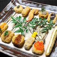 ヘルシーな植物油と生パン粉100%が串亭のこだわり。他では真似の出来ない串亭の串揚げをご堪能ください!串亭の醍醐味を味わえるお試しコースです。2時間飲み放題付。 ディナー 6,500円