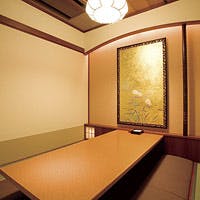 和の骨董品を取り入れた雰囲気のある空間、おひとり様のカウンター席から団体様の個室席までしっとりとした空間でお寛ぎ頂けます。堀こたつの個室は最大で24名様まで、テーブル席の洋風個室は9名様以上で貸切可能です。ご接待や歓送迎会、様々なお集まりに…お客様の大切なひと時を、最高なものにする空間をご提供致します。