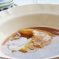 「気仙沼産フカヒレの姿煮込み」古くから高級食材として珍重される“フカヒレ”。宮廷の女性や上流階級の人など、ごく限られた人たちが若さを保つために好んで食したと伝えられています。コラーゲンが豊富でお肌にも滋養強壮にも最適です。「活アワビの二味料理 醤油煮込みとキノコソース」各国でも最高級とされる鮑。独特の食感と風味豊かな味わいをご堪能ください。
