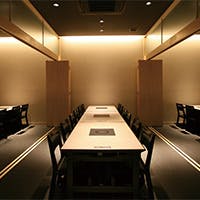 デザイナーの小椋氏が京都の日本料理店をイメージした、高級かつモダンな店内。全室個室で2名様から最大50名様までご利用いただけます。都会の喧騒を忘れ、まるで京都にいるような空間です。日本人にはもちろんですが、海外からのお客様をもてなす時に大変お喜びになられること請け合いです。夏場でもスーツを着てしゃぶしゃぶを召し上がっていただけるよう、すべてのテーブルにIHを埋め込んでおります。IHを利用することで、熱伝導効率が上がり、涼しい中でお召し上がりいただけます。