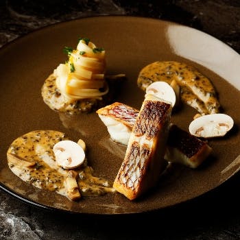 伝統を尊重しつつも製法や材料を見直し、松本なりの解釈でモダンに再構築した料理の数々。自身の体験した“人生の履歴”を皿の上で表現した料理を提供します。1934年の誕生以来、「舌平目の洋酒蒸 ボンファム」ほか数々の名物料理が、歴代のシェフにより受け継がれてきました。新本舘開場を機に、同店のシェフに就任するのが、国内のみならずフランスでも腕を振るった経験をもつ松本浩之。 洗練された空間で、新しいプルニエをお愉しみください。