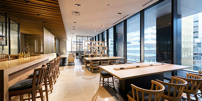 京橋駅から徒歩1分の東京スクエアガーデン1階の好立地にございます。都会の喧騒を忘れるほどのゆったりとしたひとときを過ごすことができる大人の空間。スタイリッシュな外観と、木のぬくもりあふれる店内が織り成す空間は時間を忘れてしまうほどです。デートやご接待、また小宴会など様々なシーンにご利用頂けます。開放的な店内でごゆっくりと特別な時間をお過ごしください。