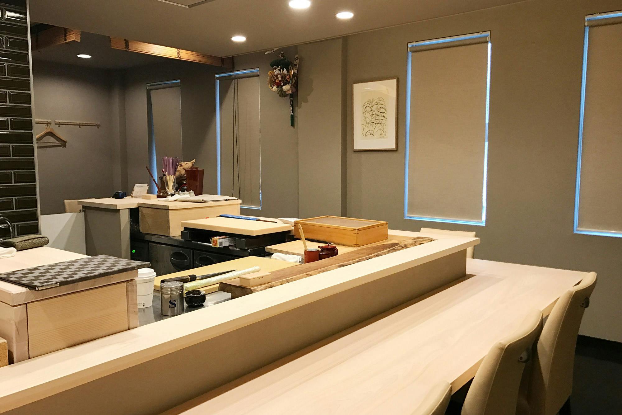 京橋駅直結の新スポット「東京スクエアガーデン」一階にしっとりと佇む店内に足を一歩踏み入れると、まず目に飛び込んでくるのが厨房をぐるっと取り囲む24席のカウンター。ネタケースの前に座って料理人と今日の献立を相談する楽しさや、匠の腕前を眺めながら盃を傾けることも出来る。3〜4名様でお掛け頂けるテーブル席や奥まったエリアのブース席は落ち着いて会食を希望される方には最適、そして、最大12名様まで入れる個室では接待や記念日などの特別なお集りにご利用いただける等、幅広い用途に柔軟に対応可能です。