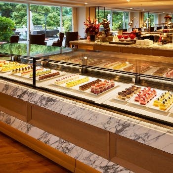 ジュエリーケースをイメージしたショーケースにパティシエ自慢のスイーツ、色とりどりのジェラートも取り揃えております。和食デザートや土日祝日にはお子さまにも人気のチョコレートファウンテンも!約30種類の煌びやかなスイーツがみなさまのお越しをお待ちしております。