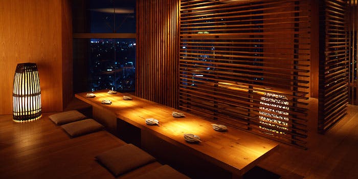 ザ・メイン最上階(17階)から望む東京の景色を360度お楽しみいただくことはもちろん、天気の良い日には富士山をも望めます。店内は黒を基調とした大人の雰囲気溢れる空間。また、親しい方々と気兼ねなく楽しみたい、といったお客さまのために個室(2室、各4〜6名さま)もご用意しております。コースメニューもご用意しておりますので、ご商談やご接待などの会食にもご利用いただけます。