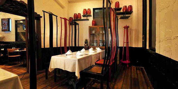赤坂らしさが残る一ツ木通りから、路地を1本入ると白壁に竹林の一軒家、門をくぐり飛び石のアプローチを進む青々と生い茂る竹林を抜けて入り口へ。その昔は銭湯だった建物を改築した店内には、中国アンティークと和の調度品が混在する不思議な温もりのある空間です。5名様以上であれば個室のご用意もあり、最大20名様までご利用いただけます。 ※当店は入口まで飛び石のアプローチとなっておりますので、お越しの際はお足元にご注意ください。また、店内にエレベーターはございませんので予めご了承ください。