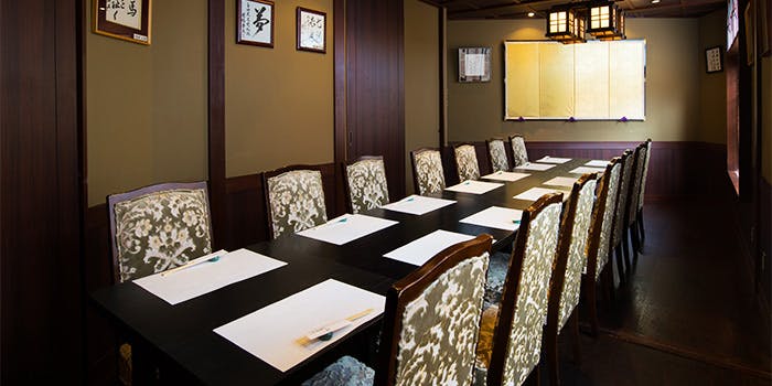 高級感溢れる店内は、舟型天井に本漆塗りのテーブルを配した貴賓室「聴雨(ちょうう)の間」や、大人数での宴席にお薦めの和個室、日清講和記念館をイメージした和洋折衷で異国風のインテリアが優雅な雰囲気を醸し出す洋個室など、シチュエーションに合わせて選べる個室をご用意しております。カジュアルにご利用いただけるテーブル席もご用意しておりますので、ご接待、ご会食、ご慶事、ご法要から、ご家族やご友人とのお食事まで、多様な用途に対応できる空間となっています。