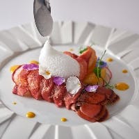 フランス料理の伝統的な基本テクニックを守りつつ、アレンジや盛りつけに創造性や斬新さを発揮していく。そして、日本人ならではの和のテイストをプラスしていく。ひと目見たときの美しさはもちろん、驚きのあるおいしさを存分に味わえます。