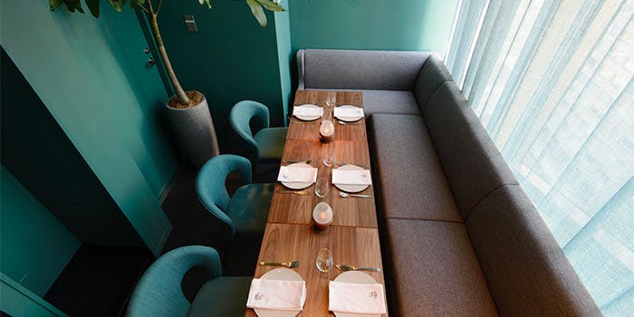 当店自慢の都心の夜景をお楽しみいただけるルーフトップテラスはまるで海外にいるような錯覚を引き起こさせます。その他にも窓の外の景色やキッチンの様子を眺めることのできる開放的なメインダイニング、接待、顔合わせ、プロポーズなど大切なおひと時を過ごすのに最適なプライベートルーム、店内、テラス両方に設けられたおしゃれなバーエリアなど、ラグジュアリーな空間で大切な方との素敵な時間をお過ごしください。