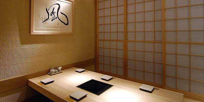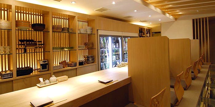 店内に足を一歩踏み入れると、否応なし目に飛び込んでくるのが見事な白木のカウンター。樹齢千年を超える檜の一枚板で、このカウンターではお好みの一品料理を心行くまで楽しむことができる。個室は座敷(10名)と洋室が2つ(4名、6名)となっており、洋室でいただく日本料理は、見事なまでの洋と和のマリアージュを演出している。また料理を楽しむためのドリンク類も充実しており、なかなか出会うことのできない、希少な日本酒、焼酎も堪能でき、併設するバー「RANSENはなれ」には200種類以上のワインを常備している。
