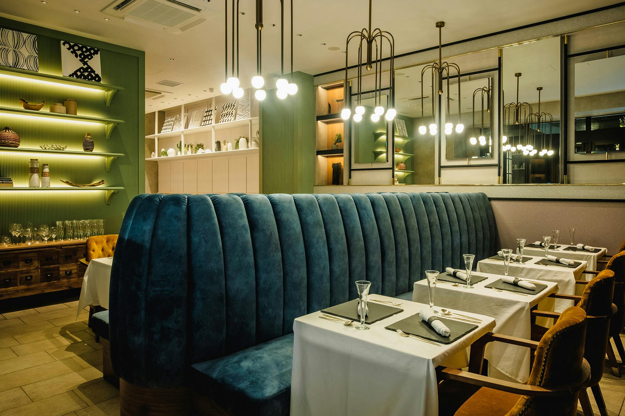 古材、大理石、グレーを貴重にホテルのラウンジのような空気感を味わうことができる店内。1階はオープンエアーなテラスで心地よい風と移ろいゆく街並みを愉しみながらお気軽にご利用頂けます。2階レストランは、カウンターやテーブル席、ゆったり寛げるソファー席など様々なお席をご用意しており、居心地の良さをご堪能頂けます。また、随所に飾られた花や緑がその場の雰囲気を華やかに演出してくれます。デートや記念日に、シーを彩る素敵な空間で心に残る時間をお過ごしください。