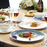 【平日限定、乾杯用にお一人様ワンドリンク付き!】 ランチタイムで一番人気のコースです。 メインディッシュは魚料理か肉料理どちらかお好みでお選びいただけます。 旬の食材をふんだんに用いた華やかな料理の数々をお楽しみください。 ランチ 7,661円6,215円(18%OFF)