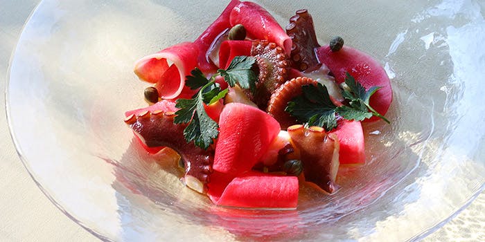 イタリアのミシュラン三ツ星シェフをはじめ、料理ジャンルを問わず国内外の“時代の料理人”を招聘して、毎年フェアを開催。世界的シェフ達が東京でのパフォーマンスの舞台として選ぶベッラ・ヴィスタ。スーパーシェフのノウハウが自慢のパスタ料理をはじめ随所にちりばめられています。