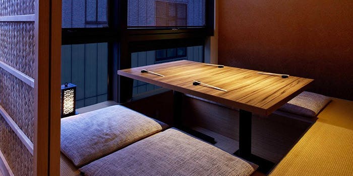 3名〜40名様まで対応可能の掘りごたつ式の個室を12室完備。2名様ずつ仕切られたプライベートな禁煙のカウンター席。接待から歓送迎会等様々な用途にご利用いただけます。お料理は日本酒に合うおでん、焼酎に合うさつま揚げをはじめ、全て手造りの本格和食メニュー約120種類をご用意しております。アラカルトメニューと宴会用コースメニューの他にほぼ1ヶ月毎に変わるおすすめメニューがございます。味、盛り付けはもちろん、器、演出にもこだわったお料理をお楽しみいただけます。