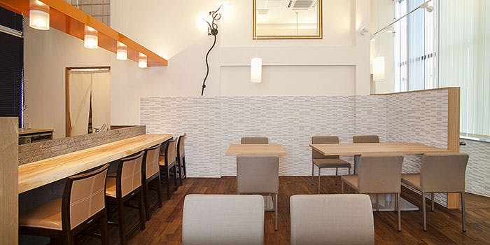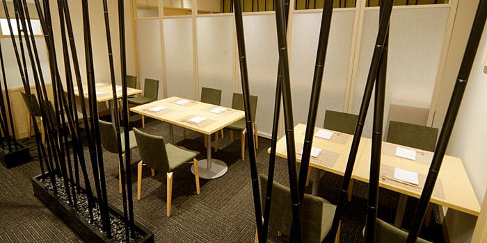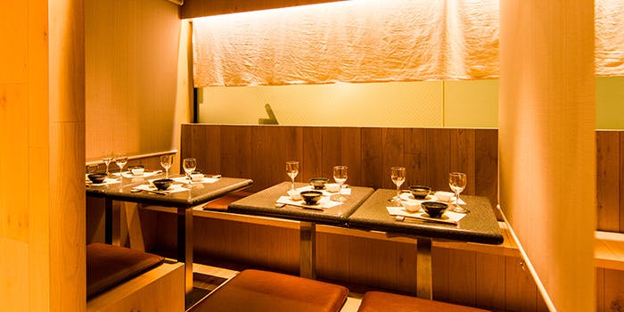 シックな色合いで統一された店内は、まさに心落ち着く上品な雰囲気。半個室のお部屋も備わっておりますので、会食にもご利用いただけます。お隣の席とも程よい空間があり、お食事のひとときをより愉しくする大切な方との会話もゆったりとでき、ごゆるりとお過ごしいただけます。