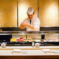 確かな目利きで厳選した築地直送の極上海の幸を使用。鮮度を落とさず最低限の手数でにぎる技はまさに匠の領域。素材の旨さをさらに引き出すためにひと手間加えた江戸前寿司 また、四季を映す和食の逸品も魅力のひとつで多彩に揃えております。