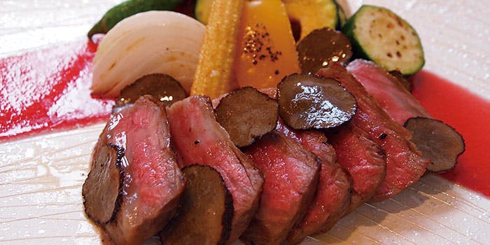 厳選した黒毛和牛を主役に全国よりすぐりの食材を使用。海の幸や、野菜を、確かな技術の当店シェフが「美味しさ」を最大限に引き出し絶妙の焼き具合で仕上げます。繊細かつダイナミックな味をお楽しみください。