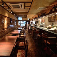 築60年の建物の梁や柱をそのまま生かした、本場イタリアを彷彿させるシックで落ち着いた雰囲気の店内。異国情緒あふれるハイセンスな空間はまるでイタリア本土を旅しているかのよう。天然一枚板を使用したカウンター席は、大人の落ち着いた雰囲気の漂う空間。様々なワインをグラスで愉しみたい方にお勧めです。ワイン一杯からでも気軽にご利用いただける、高級すぎずラフ過ぎないカジュアルな空間。気心知れた仲間と、ゆったりとしたお時間をお過ごしください。