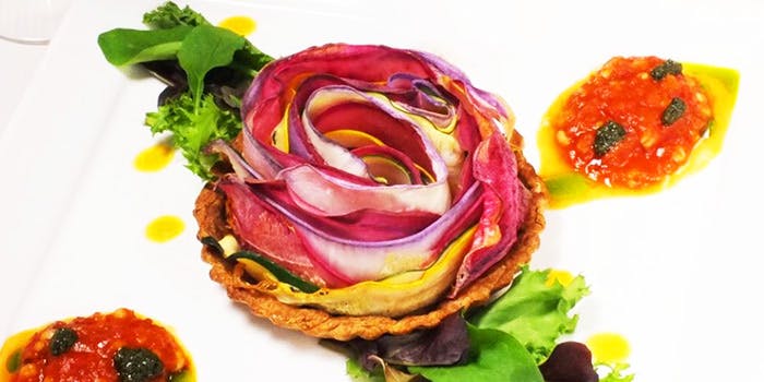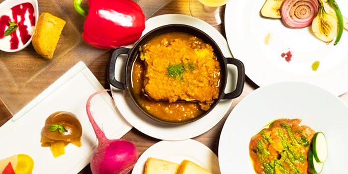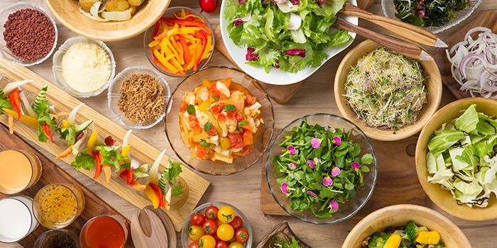無農薬、有機、減農薬のものを中心に使い、お肉やお魚は厳選したもの使用。野菜ソムリエ、栄養士、マクロビオティックコンシェルジュなどのプロが在籍し、素材本来の旨みを活かしたお料理を堪能できます。新鮮なお野菜達を使ったお料理の数々は、目にも鮮やかでついつい写真を撮りたくなってしまいます。食べながら元気になる、飲みながら元気になる、身体が喜ぶ優しいお料理は、小さなお子様から大人まで大人気です。 ディナー 3,500円