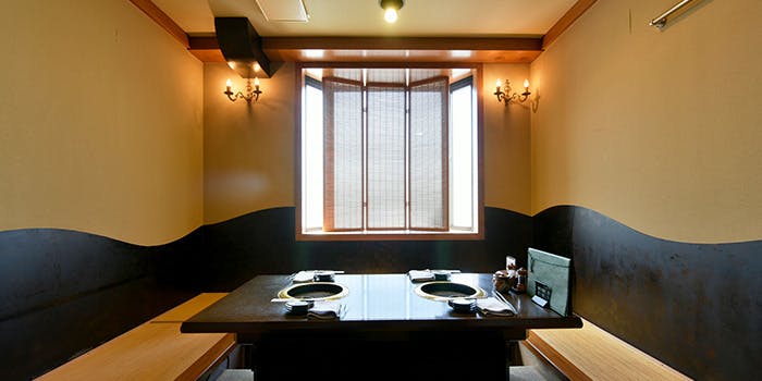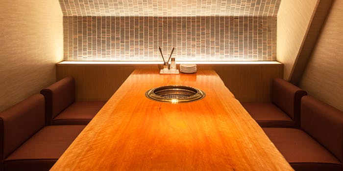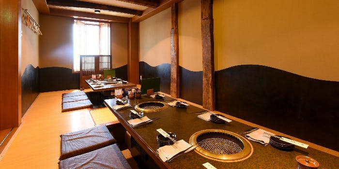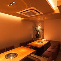 お部屋には鹿児島の地名の名前が付けられており、エントランスには雄大な桜島画がお出迎えいたします。全室個室のため、小さなお子様連れでも安心してご利用いただけます。排煙設備も完備しておりまして、煙やにおいを気にせず焼肉を楽しめるのも魅力。ゆっくりと寛ぐことができる掘りごたつタイプのお部屋。靴を脱ぎたくない方にはテーブル席もご用意しております。最大26名様まで対応可能ですので、デートや、友人との集まり、会社宴会など幅広くご利用ください。