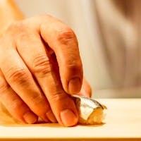 この道15年以上。老舗 久兵衛で腕を磨いた当店の料理長が握る自慢の本格江戸前鮨。仕入れ・仕込み・握りまでひとつひとつの作業に職人としてのこだわりと哲学を持ち、手間を惜しまず皆様へ本物をご提供。季節の旬のネタとこだわりのシャリが、口の中で幸せの時間を生みます。造りだすのは美味しい鮨だけではございません。『鮨屋における一番の花形 カウンター席でお客さんにとって満足のいく時間を過ごして頂く思いで握っています』と語る料理長。鍛え抜かれた技と勘、そしておもてなしの心で今日もカウンターに立ちます。