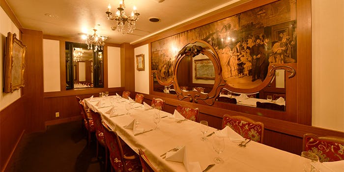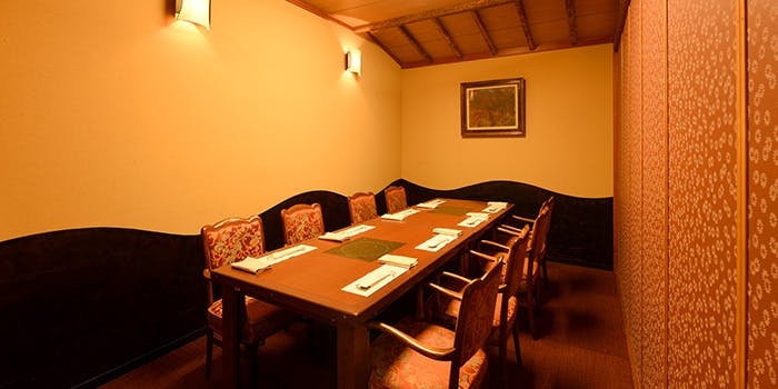 創業当時の内装を、大切にしながら使用しています。豪奢ではなく上品に。あるものが飛びぬけて目だってしまわぬように。調和の取れた落ちついた空間づくりを心がけています。個室もご用意しておりますので、ゆとりのあるお席でおくつろぎください。
