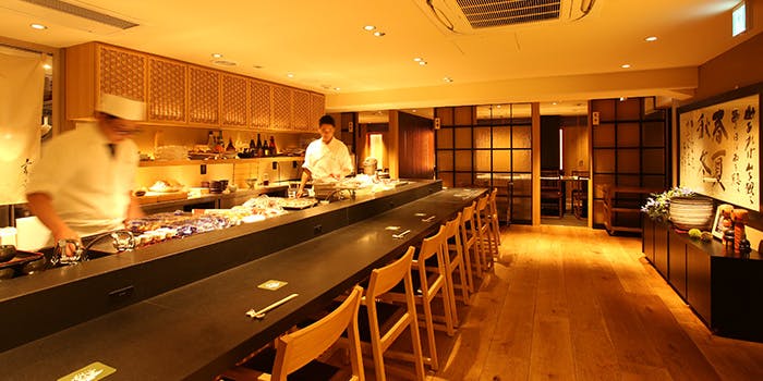 大人のお店が多く軒を連ねる西新宿7丁目。新宿駅の喧騒を離れてゆったりとしたお時間をお過ごし頂くことができます。普段遣いにおすすめのカウンター、テーブル席、接待やお顔合わせに最適な完全個室席のご用意もございます。大切な会食やデートなどにも是非ご利用ください。オープンカウンターのお席では、毎日産地直送にて入荷する季節の旬の素材を板前が目の前で調理し、最高の状態でご提供いたします。広々とした空間で、どうぞごゆっくりお寛ぎください。