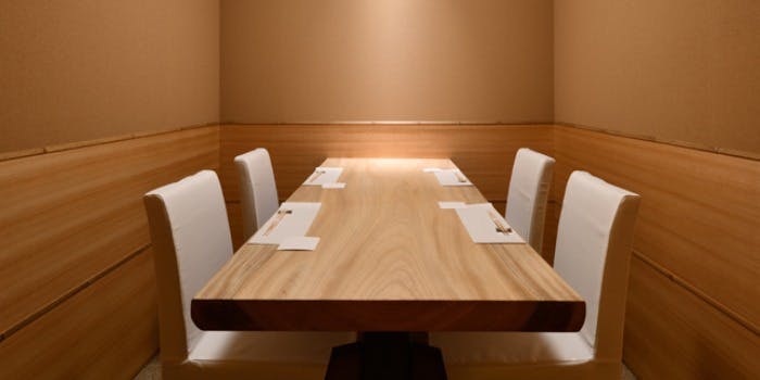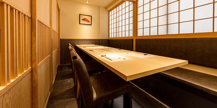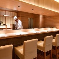 店内は木目調の暖かみがある色味を基調とし、柔らかい照明が差す居心地の良い空間です。カウンター席以外にもテーブル席と個室をご用意し、寛ぎながらお食事をお楽しみいただけます。お鮨専門店ですが個室がございますので、ご家族などお子様連れでもご心配せずにお食事を召し上がっていただけます。ぜひ美味しい食事のひと時を皆様でお過ごしください。