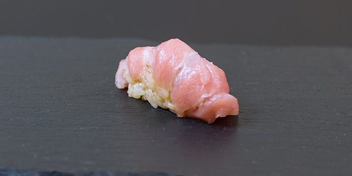 幼少の頃より料理人の父親から料理を学び、その後都内の銘店にて修行。この度晴れて店を構える若き店主の珠玉の江戸前の握りをご堪能ください。毎日市場に通い店主自ら選んだその日に採れる最高の食材を用いた江戸前料理は絶品です。 ディナー 19,360円