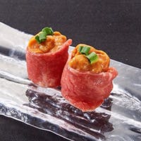 名物の極みタンしゃぶや自慢の赤身肉など、黒毛和牛を心ゆくまでご堪能いただけます。生肉取り扱い店だからこそできる生肉メニューも豊富に取り揃えており、黒毛和牛ユッケや、生ウニの肉巻き、牛刺しなど鮮度抜群の生肉を贅沢にお愉しみください。