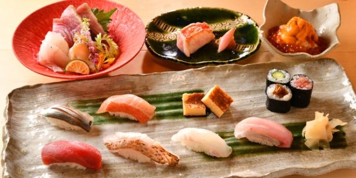 【技が光る特別なお料理で思い出に残る1日を・・・季節の恵みを堪能していただける誕生日・記念日の特別プラン】 季節の色々な旬を沢山食べて頂きたいので、「少しずつの沢山」をご提供しております。 握りと一品を織り交ぜながら、その日に仕入れた季節の旬魚や逸品料理をご提供します。 ディナー 16,940円