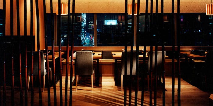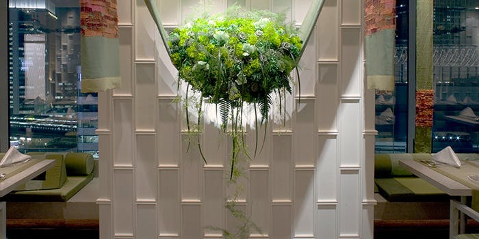 店内設計はディスプレイデザインの最大手、乃村工藝社がプロデュース。白とベージュのカラーを基調とした落ち着いた空間には、笹と竹をモチーフにしたインテリアが随所に散りばめられています。メインダイニングは全席窓際に面したテーブル席が配列されています。また個室については4〜6名様までの小部屋と、6〜8名様までの大部屋を2室ご用意しています(個室ご利用の場合は、昼夜共に予め指定のコース料理でご案内させていただきます)。また8名以上のグループでのご利用にあたっては、最大12名様までゆったりと座れる窓際のテーブル席もございます。