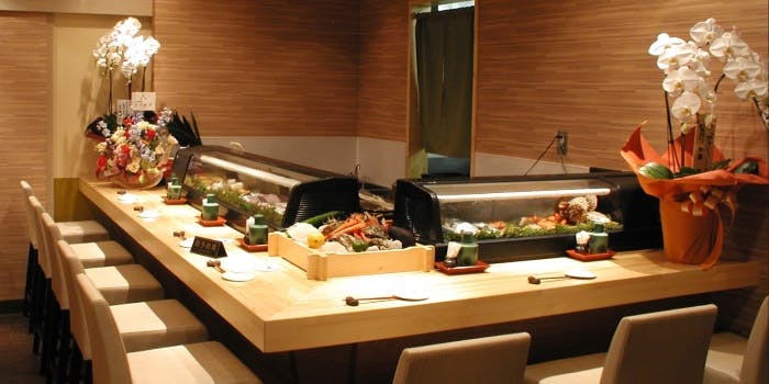重厚感のある落ち着いた店内はご接待はもちろん、顔合わせ・長寿のお祝い・お子様のお祝い含むご家族のご会食など記念日・誕生日にもご利用いただけます。 職人の技が目の前でご覧になれるカウンター席、大事な方とお過ごしいただける個室席をご用意しております。