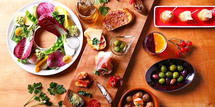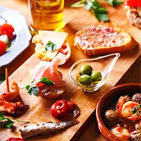 いろんなタパスに加え当店人気のきのこのアヒージョ、名物のシーフードパエリア、メインはBBQチキンとADRIFTを楽しんでいただけるスタンダードなコースです。 ディナー 5,000円