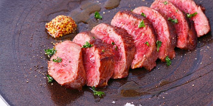 アメリカ農務省の格付けで最上級の品質と認定された「プライムグレード」を、専用熟成庫で長期熟成します。牛肉は熟成が進むと、肉自体が持つ酵素の働きで肉質が柔らかく変化するのと同時に、タンパク質が分解されて旨み成分であるアミノ酸が増してゆきます。この長期乾燥熟成によって柔らかい食感と旨味が増した肉を厚切りにして、焼き上げます。その焼きあがりは、表面はカリっと香ばしく、中からはジュワッと肉汁がしたたります。ステーキの他にも本格的なシーフードメニューや世界各国の1000本以上のワインをご用意しております。