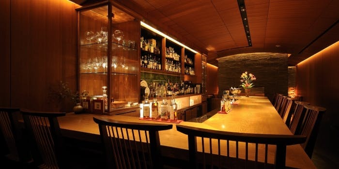 店内に足を一歩踏み入れると、否応なし目に飛び込んでくるのが見事な白木のカウンター。樹齢千年を超える檜の一枚板で、このカウンターではお好みの一品料理を心行くまで楽しむことができる。個室は座敷(10名)と洋室が2つ(4名、6名)となっており、洋室でいただく日本料理は、見事なまでの洋と和のマリアージュを演出している。また料理を楽しむためのドリンク類も充実しており、なかなか出会うことのできない、希少な日本酒、焼酎も堪能でき、併設するバー「RANSENはなれ」には200種類以上のワインを常備している。