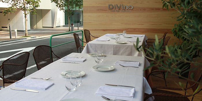 Divinoとはイタリア語で「神からの」「天与の」の意味。イタリアの郷土料理は、天から与えられた素材を活かし、本来の味を引き出します。シェフ長岳志は、ピエモンテ、ボローニャ、パルマで「ディビーノ」の料理に出会い、研鑽をしてきました。日本の豊穣の恵みとイタリアの食材に向き合い、本場から学んだ姿勢と技術でお客様にご提供します。そしてDi Vinoは「ワインの」の意味。当店選りすぐりのイタリアワインもテーブルを演出します。料理とワインと人、心地よいひとときをお楽しみください。