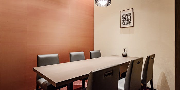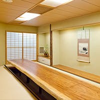 店内はカウンターのお席と個室のお席がございます。美しい白木のカウンターの目の前では、板前の華麗な手さばきをお愉しみいただけます。個室は掘りごたつのお席になっておりますので、ゆっくりとおくつろぎいただきながら、お鮨をお楽しみいただけます。優雅で気品のある和の空間で、大切な方と極上のひと時をお過ごしください。