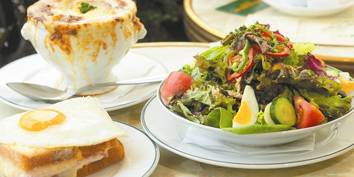 壁一面に張られた鏡や赤い椅子、黒板に書かれたメニュー、飛び交うフランス語のオーダーやギャルソンとの会話を楽しみながら、カフェオレやクロックムッシュ、山森のニース風サラダやステーキフリットなどの定番カフェメニューから、旬の食材を使用した季節メニューまで、本場の味をご堪能ください。