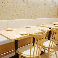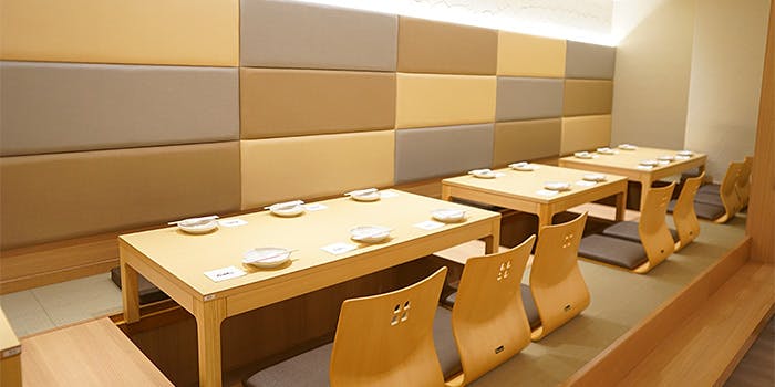 モダンな雰囲気を併せ持った店内の作りは、既存のお寿司屋さんにとらわれない前衛的な気持ちの表れです。カウンター席は職人が寿司を握る姿を目の前にお食事ができる特等席。職人の技や会話を楽しみながら臨場感溢れる時間を過ごすことができます。ビジネスのご接待や記念日、ご家族のお祝い事にはテーブル席をご用意。大切な方と共に寿司や料理を囲み、お酒を交わし合う素敵なひとときを。