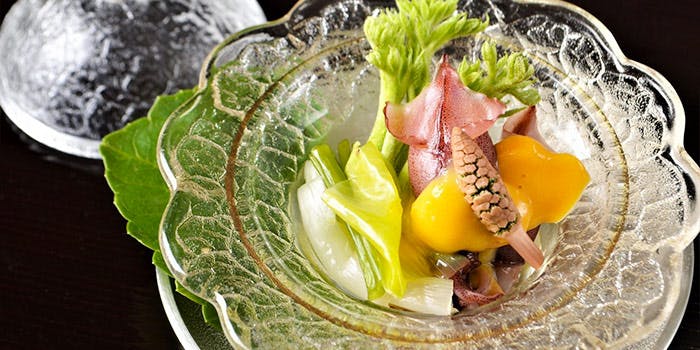 料理と日本酒をゆっくりとお楽しみいただける、三組までの大人の隠れ家。 伝統的な京料理に独創性を加え、味は勿論見た目にも華やかな逸品をご賞味ください。 ディナー 13,200円