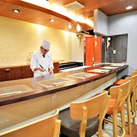 店内は、シックでモダンな空間となっております。カウンター席では、職人の技を目の前でお楽しみいただけます上質なお座敷ではゆったりした時間をお過ごしいただけます。少人数からご利用いただける個室と、最大16名様までご利用いただける個室のご用意もございます。記念日やご接待にご利用ください。