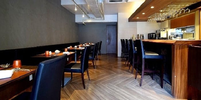 少し暗めでラグジュアリーな雰囲気の中、鉄板フレンチを楽しむ贅沢なひと時を過ごしてみてはいかがでしょうか。オープンカウンターは大きくゆとりを持ち、ゆったりと食事をお楽しみいただけます。シェフが腕を振るう絶品鉄板フレンチとビオワインのマリアージュをご堪能ください。充実した品揃えのオレンジワインもご用意しております。
