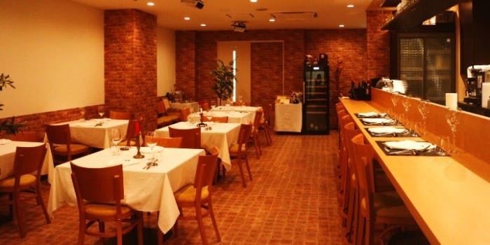 ヨーロッパのワイン貯蔵庫をイメージした店内は、12名まで座って頂ける大鉄板のカウンター席ではおひとり様やデートにおすすめ。接待や記念日には4名様のテーブルが2卓ご用意ございます。定休日の貸し切りは6名様より承りますので、どうぞお気軽にご相談ください。