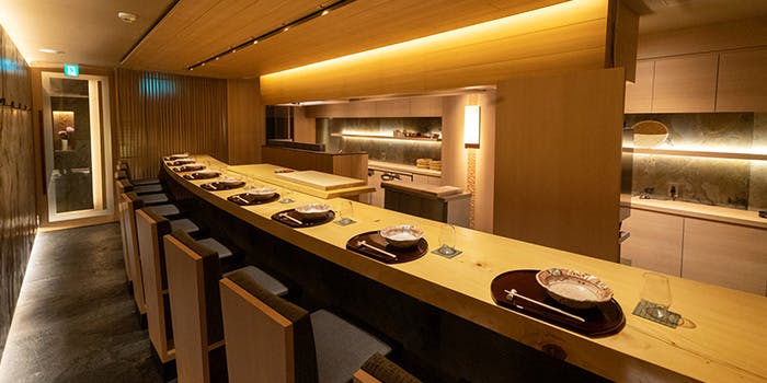 凛とした上品で且つ居心地のいい店内は、品格ある大人のための寛ぎ空間でございます。お席はカウンターのみで、一枚板のカウンターになっております。静かで贅沢なひと時をお過ごしください。