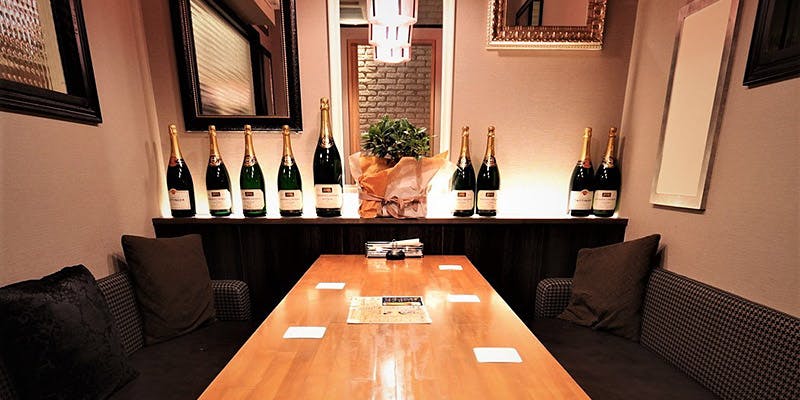 全個室(5部屋)。落ち着いた温かみのある照明のモダンな空間となっております。お客様のプライバシーを重視し、裏口からのご来店も可能ですのでご予約の際にお気軽にお伝えください。本当の大人の隠れ家をお楽しみ頂けます。