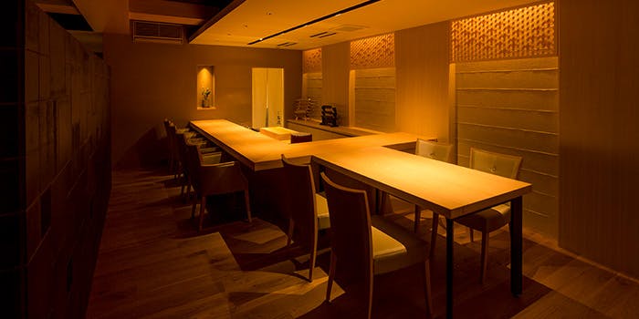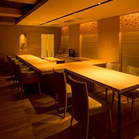 ゆったりと寛げる上質な雰囲気漂う店内には、カウンター席・テーブル席をはじめ、個室もご用意しております。カウンターはゆったりとした造りで、お席には柔らかなクッションのソファーをご用意しております。個室は12名様までご利用いただけますので、接待や宴会など、おもてなしの場にご利用くださいませ。またメインフロアとカウンター席を合わせると最大55名様までご利用いただけますので、同窓会やレセプションパーティーなど大規模な宴会にもおすすめでございます。