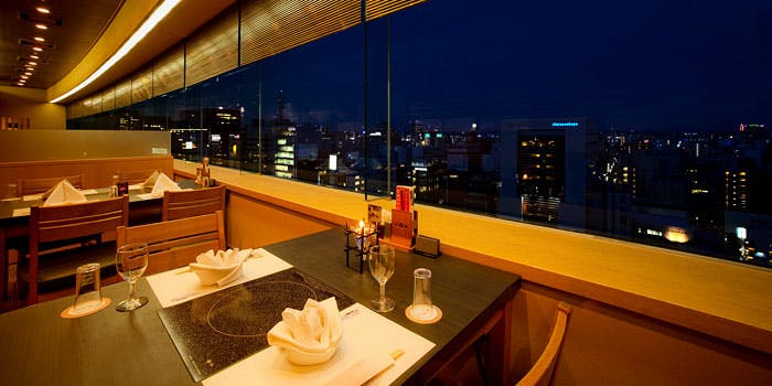 当店のステーキは数種の牛肉から選べるスタイルが特徴です。 肉のプロフェッショナルが黒毛和牛や各地の銘柄牛はもちろん、希少価値が高く市場にはほとんど出回らない、各界の食通達をも虜にしている『赤身の旨さ』を追求した熟成肉”ドライエージングビーフ”をご用意。 異なる味わいや肉質を当店自慢のステーキで存分にご堪能して頂けます。百貨店の最上階のレストランであり、おもてなしのサービスも心ゆくまでお楽しみください。